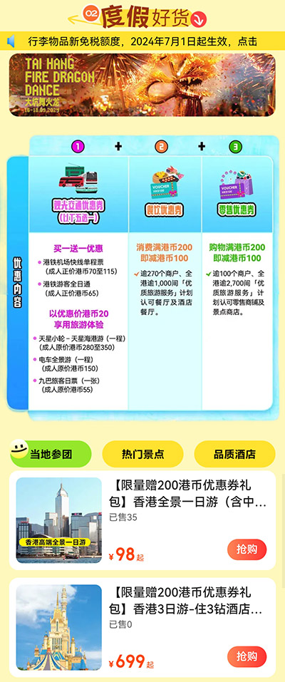 During the peak travel season of summer, HKTB rolled out a brand-new summer promotion campaign “Hong Kong Summer Chill” from mid-July to September 2024 to dish out 500,000 sets of “Summer Triple Rewards” to overnight inbound visitors. Each set included three coupons from the transport/sightseeing, dining, and retail sector, with total amount offered equivalent to HK$100 million. The campaign featured over 453 brands and covered up to 3,700 outlets across Hong Kong. HKTB further promoted the campaign via strategic partnerships with leading travel and lifestyle brands including Meituan, Ctrip and airlines, amplified exposure and exclusive shopping perks to encourage visits and spending.