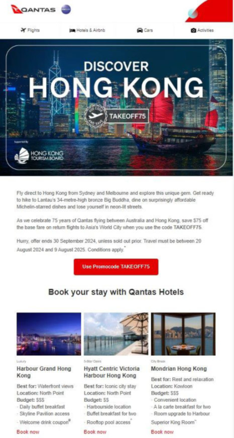 offering “3 nights in Hong Kong for free” to increase awareness of Hong Kong as a gateway