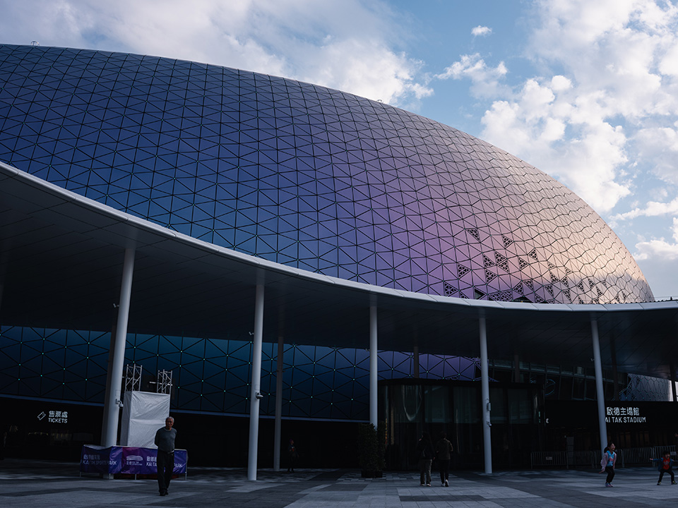 Central Square is the main axis connecting the Kai Tak Stadium to the adjoining parts of the Sports Park. From above, its design resembles a piece of fabric stretched and pinned to the neighbouring structures – albeit with a huge hole. From inside, it is a great portal-like circle opening to the sky. Crouch down and tilt your lens upwards to capture the structure, the sky and the Stadium in one frame.