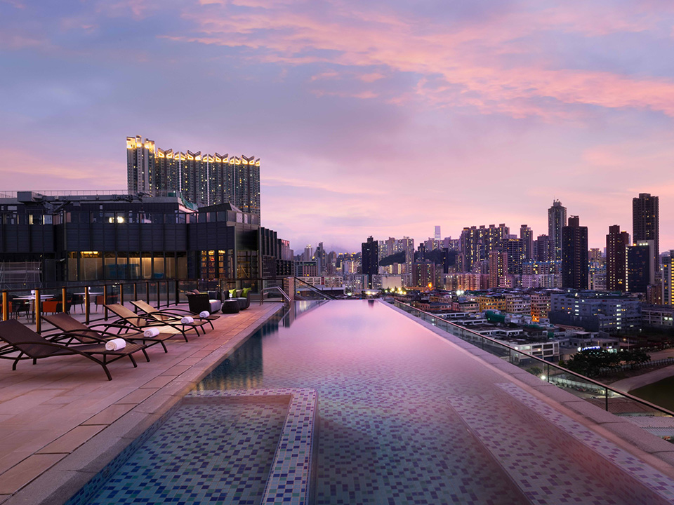 Sitting on the 15th floor of Dorsett Kai Tak Hong Kong, London’s iconic Jin Bo Law Sky Bar serves expertly crafted cocktails inspired by global destinations. This Hong Kong outpost of the London-acclaimed nightlife destination boasts a sleek interior that offers panoramic city views of the Kai Tak Stadium and the harbour through its floor-to-ceiling windows. The blueish-purple hue of the Stadium matches beautifully with the sky and water. Step out onto their spacious terrace with an infinity pool for a change in vibe with equally stunning vistas.