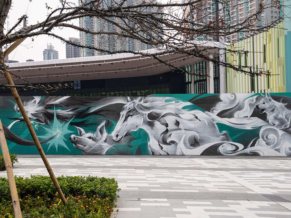 London-based Chinese Mainland artist Satr has created a four-metre-long mural next to Kai Tak Sports Park’s Health and Wellness Centre featuring the 12 animals of the Chinese zodiac. Done in her monochrome, ink painting style, ‘The Rhythm of Life’ shows animals leaping forward accompanied by misty swirls inspired by Chinese cloud motifs symbolising auspiciousness. Snap a photo with your zodiac animal and stroll up the steps nearby to get a good view over the Kai Tak Youth Sports Ground.