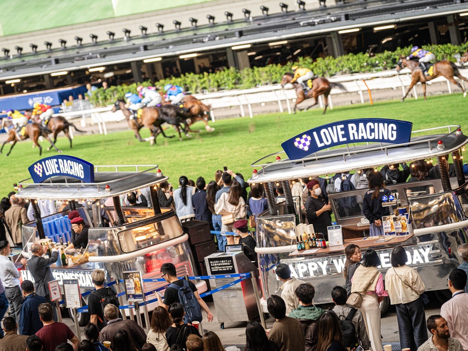 With umbrellas, artificial turf and the option to book outdoor dining tables or rustic wooden benches, the setting is both comfortable and inviting. Enjoy classic snacks and a cold beer amidst the relaxed Hong Kong racing vibe.