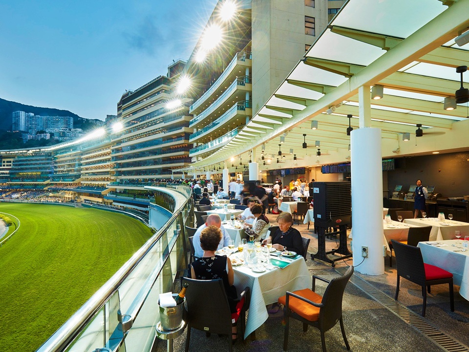 Take in sweeping views of Happy Valley Racecourse from this spacious outdoor terrace and feel the excitement as the horses charge past. Indulge in a generous Western-style barbecue buffet in a lively atmosphere.
