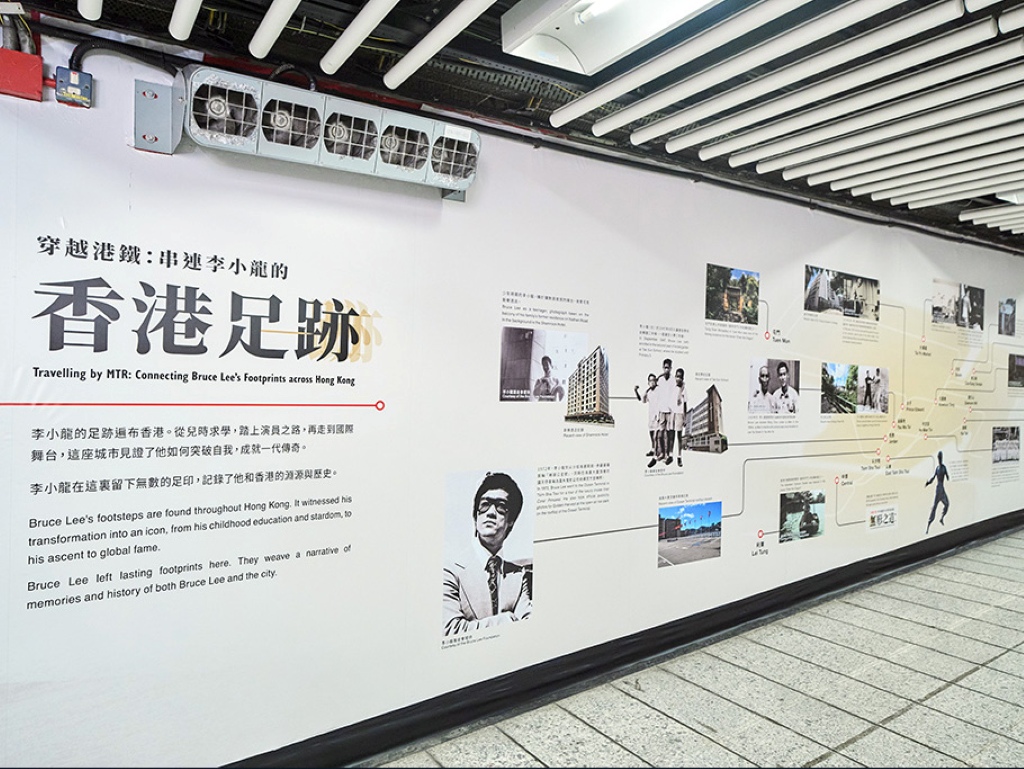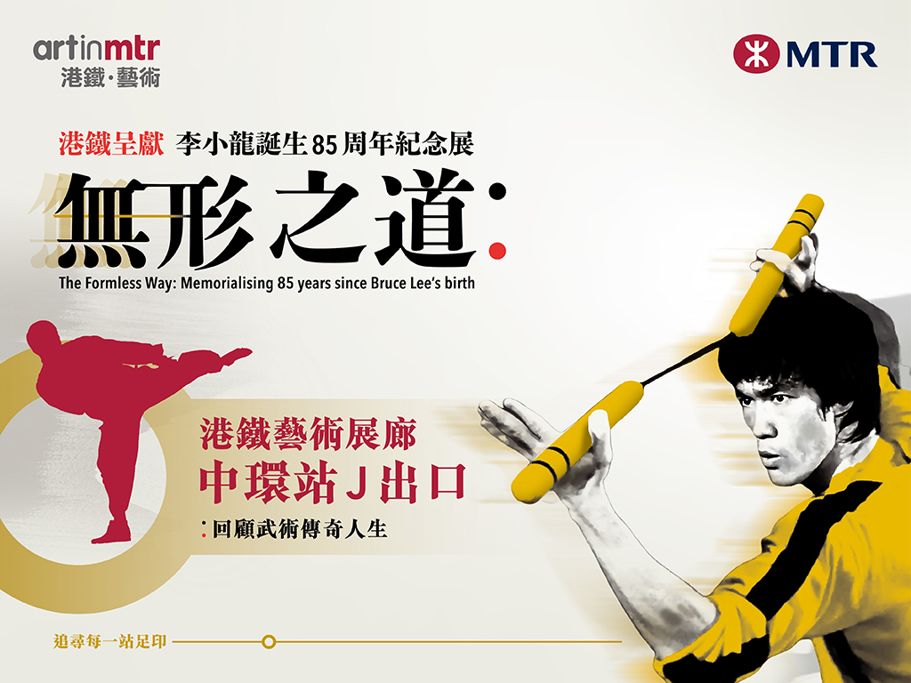 今年是傳奇巨星李小龍誕生八十五周年,港鐵公司聯同李小龍基金會及香港文化博物館,由十一月二十五日起舉辦《李小龍誕生85周年紀念展:無形之道》,展現這位成長於香港的一代宗師在電影、武術、哲學及藝術的深厚思想和內涵。乘客可以在日常旅程中,探索李小龍影響後世之「無形之道」,以平等、尊重、共融為日常修行之法,領悟一代武術傳奇如何突破界限、連接世界, 並在現今社會中持續啟發人心。