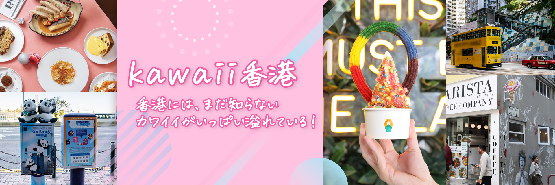 香港にはアジアと西洋の文化が融合した、独特のカワイイ文化があります。グルメやアートはもちろん、街を歩いているだけでも日本では出会えないトキメク体験がたくさん!ぜひ、香港の kawaii を発見する旅に出かけてみてください。