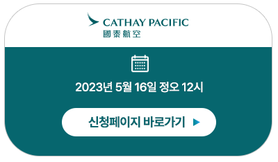 | 당첨자 발표 | 2023년 6월 1일 캐세이퍼시픽 항공사 웹사이트 & 당첨자 개별 이메일 발송 * 캐세이퍼시픽 항공사에 등록된 이메일을 통해 발송됩니다. |