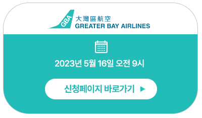 | 이벤트 기간 | 2023년 5월 16일 오후 12:00 - 2023년 5월 22일 23:59 까지 * 한국 지역 배포수량 (약 만장이상) 항공권이 모두 소진되는 경우는 조기 종료. - 홍콩항공, 홍콩익스프레스항공, GBA항공사 항공권 증정 이벤트에 대한 자세한 내용은 월드오브위너스 페이지에서 확인하시기 바랍니다. |