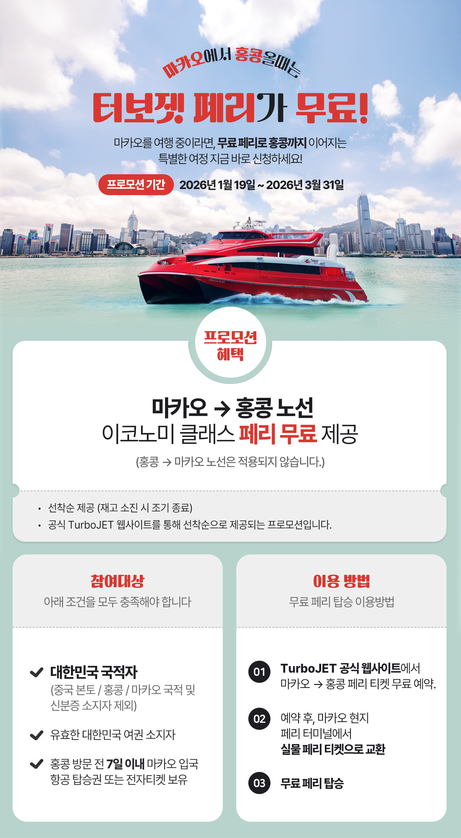 마카오에서 홍콩으로, 무료 페리 프로모션
