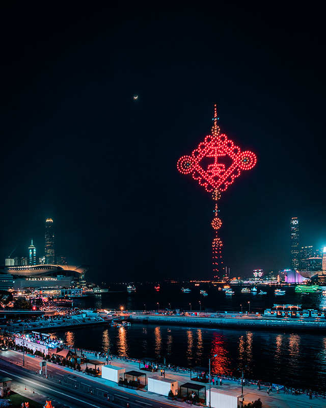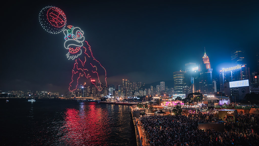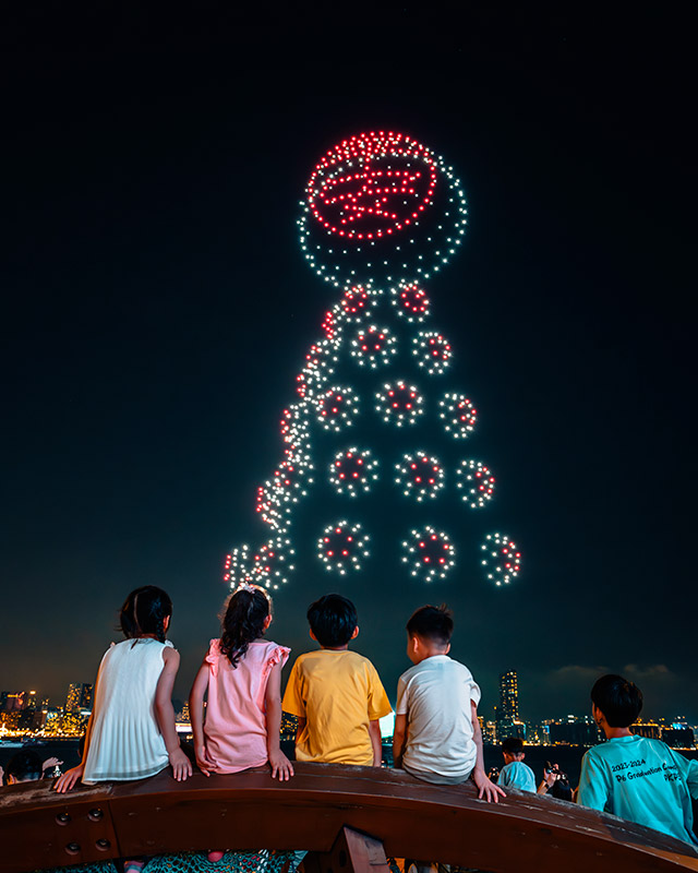 1,000架無人機列陣於維港上空約90米,拼湊出多幅具傳統節慶特色的動態圖案,包括高達60米的立體包山、直徑達30米的巨大平安包、太平清醮花牌、醒獅和平安結等,場面壯觀,吸引市民旅客沿岸觀賞並打卡留念。旅發局更於表演現場免費派發雪糕,吸引一家大小前來共度歡樂時光,營造溫馨社區氛圍,進一步提升活動參與感。