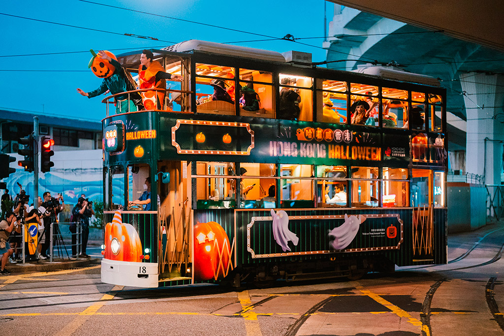 緊接中秋節,香港迎來萬聖節熱潮。旅發局於10月推出「哈囉威香港」宣傳活動,透過創意設計與多元活動,營造全城節慶氛圍,吸引旅客投入其中。尖沙咀太空館光雕匯演成為打卡熱點,建築外牆化身巨型南瓜、白色幽靈、菠蘿包等應節造型,配合音樂演出,吸引市民旅客拍照留念。旅發局推出發光主題電車,日夜穿梭港島街頭,並將雪糕車打造成「南瓜車」,限定現身銅鑼灣、尖沙咀及旺角,增添節慶趣味。