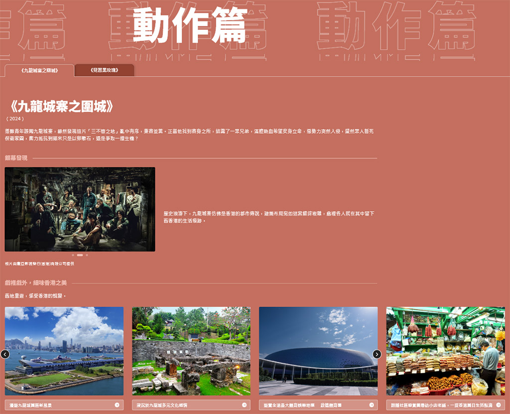 配合紀錄片發布,旅發局特別呈獻香港電影旅遊指南,向旅客介紹港九新界一系列精心挑選的體驗活動與拍攝地點,鼓勵旅客親身走訪電影場景,感受銀幕背後的城市故事,並探索更多文化景點與地道風貌,延伸電影旅遊效益。